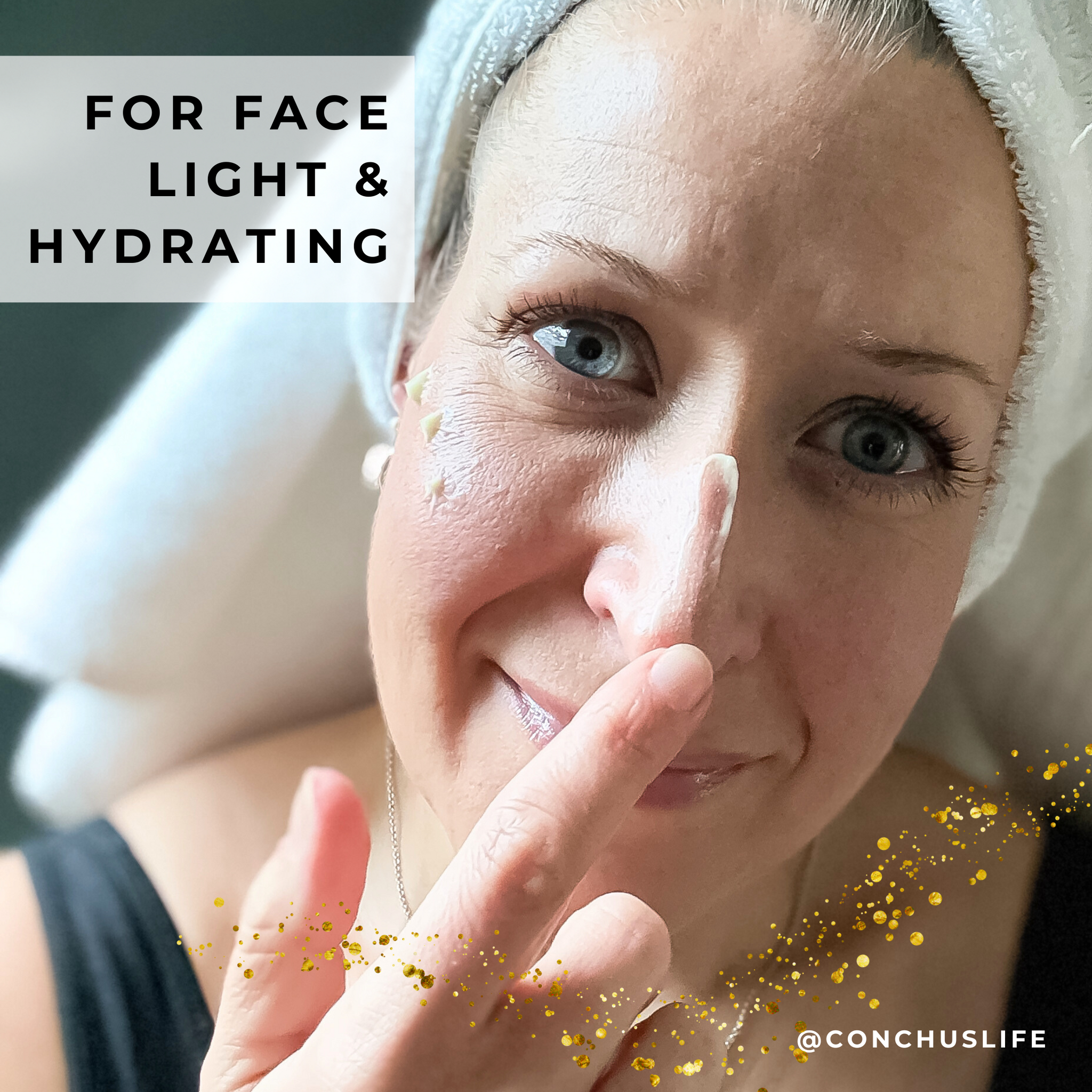 MERRY Light Cream is CONCHUS’ ultra light, ultra versatile winter moisturiser - a soft, easy-to-use cream that instantly hydrates and soothes while absorbing beautifully into the skin. It’s light enough to use on the face and nourishing enough to use all over the body, making it a gentle everyday essential for the colder months.