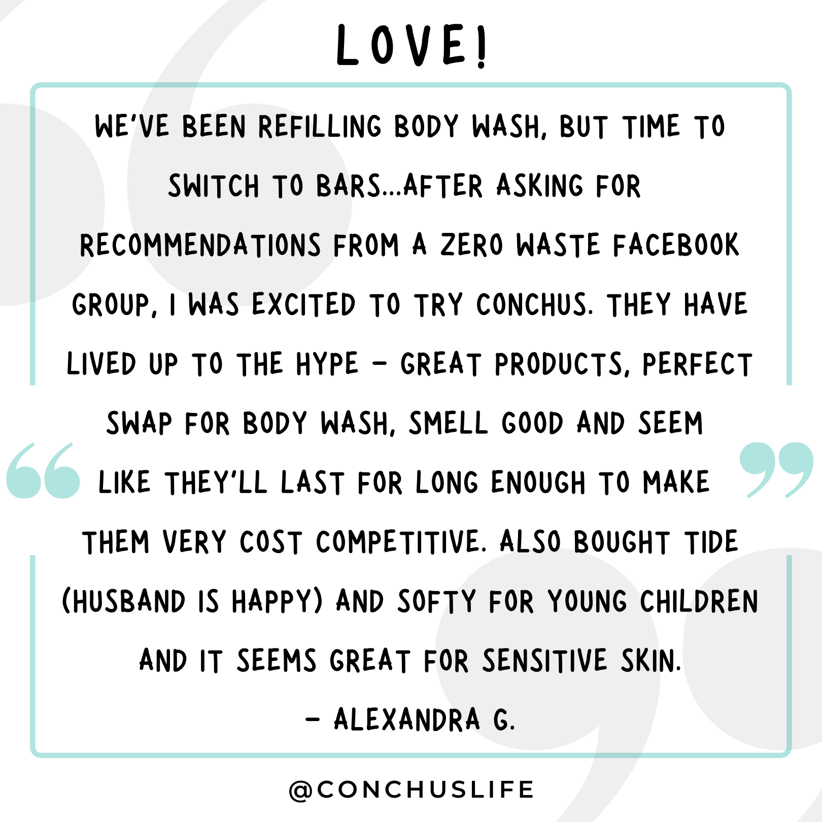 This is one of my favourite bars from Conchus, I love the smell, it lathers up well and leaves my skin feeling soft.